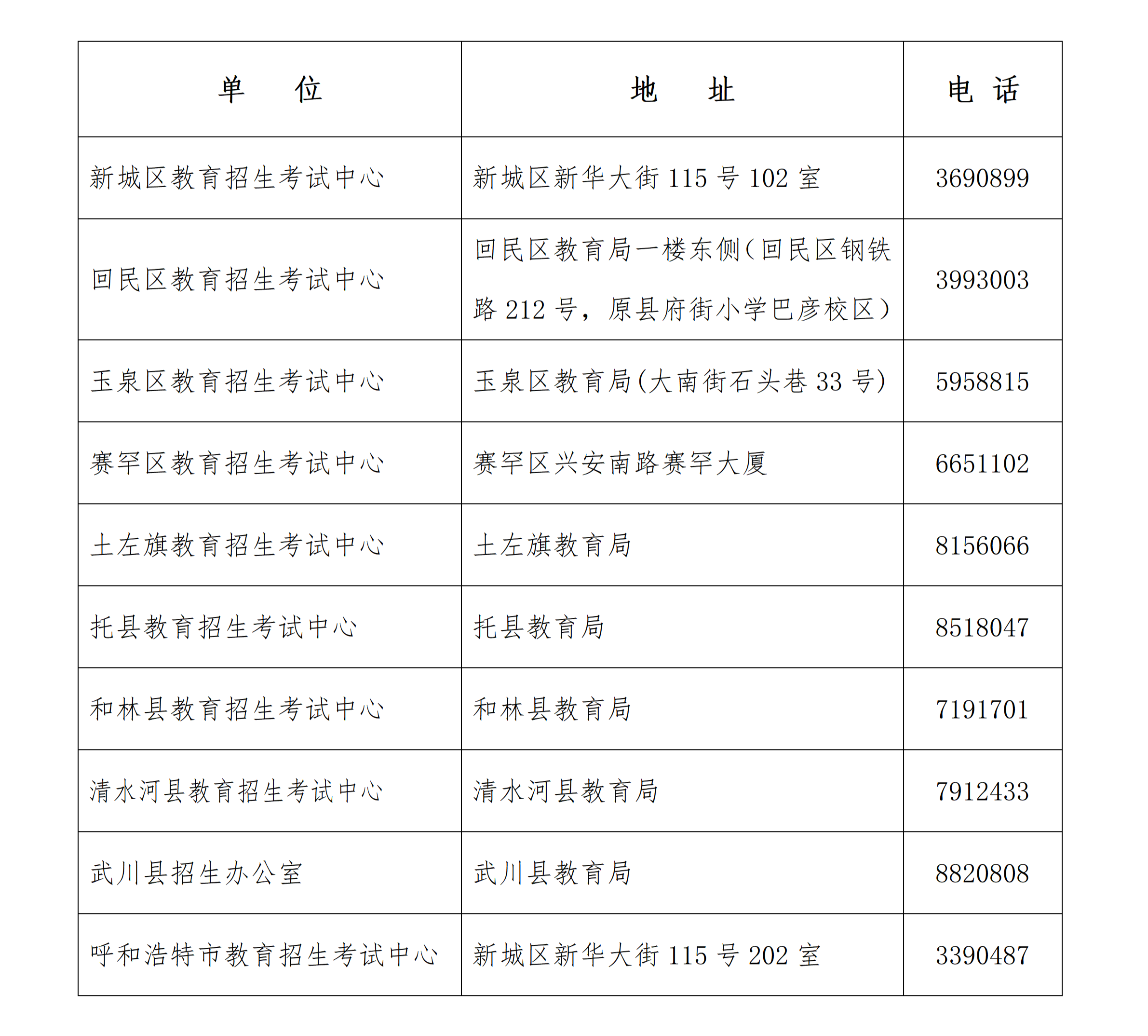 / 呼和浩特市2026年初中学业水平考试(中考)报名咨询地址及咨询电话